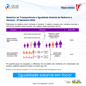 Fique atento! Relatório de Transparência e Igualdade Salarial de Mulheres e Homens – 2º Semestre 2024 Clique aqui para acessar o documento completo!