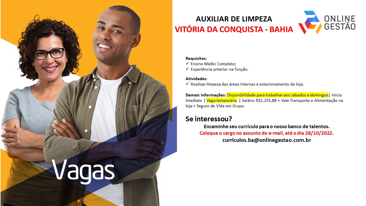 Vaga Auxiliar de limpeza – Vitória da conquista