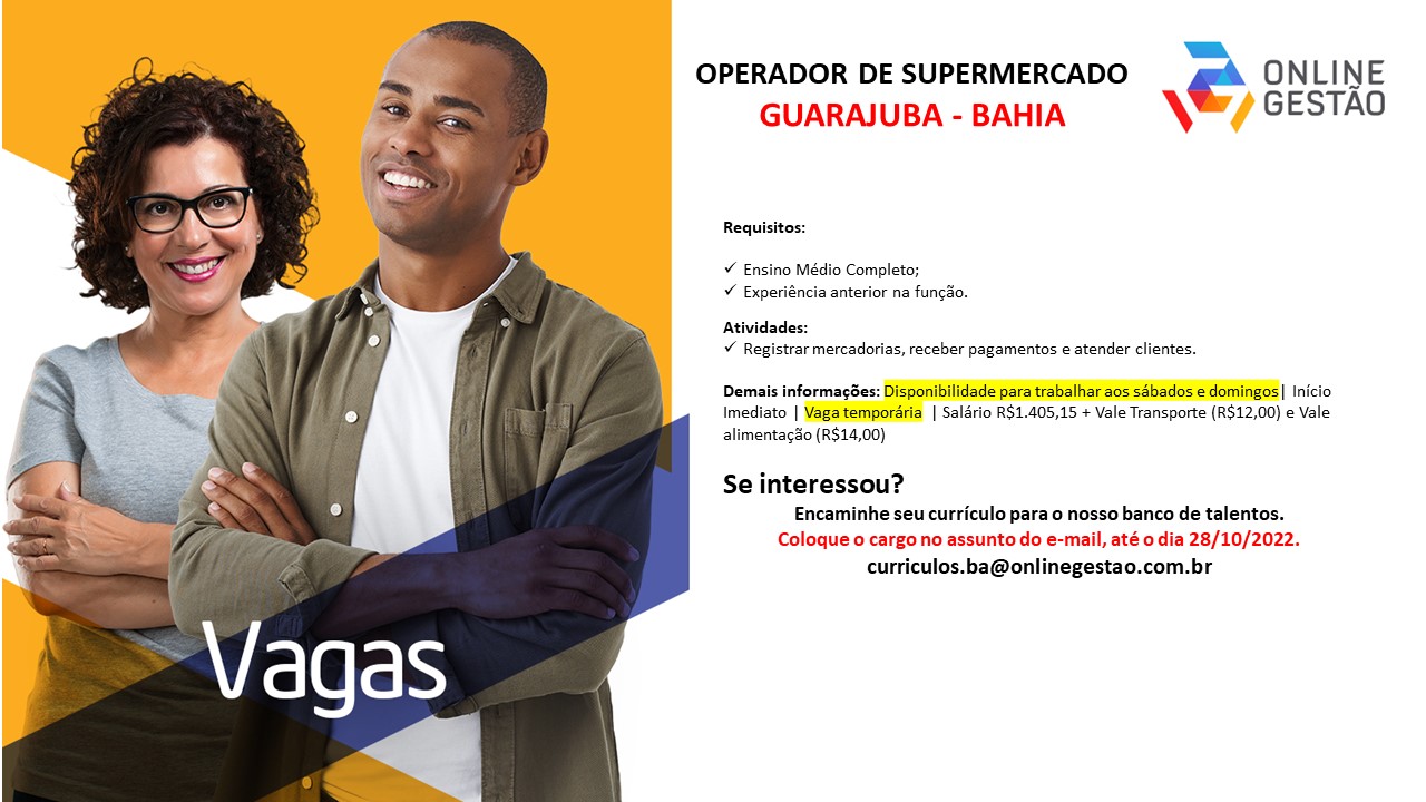 Vaga operador de supermercado – Guarajuba Bahia